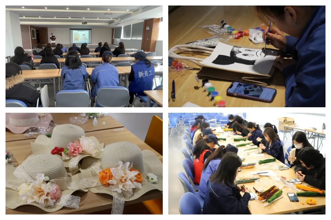 同时,嘉兴双环各工厂分别举办了DIY手工活动。一工厂的DIY草帽制作,经过精心设计与编制,顶顶独具匠心,展现完美姿态;二工厂的DIY手工帆布包活动,大家自由发挥创意,不仅独具特色,还宣传了环保理念;三工厂的扭扭棒花束制作,通过弯折、缠绕、固定、胶装等一道道工序,一朵朵精美的花朵便跃然掌中,十分赏心悦目。通过各种活动,女员工们在工作之余度过享一个轻松愉悦的节日。