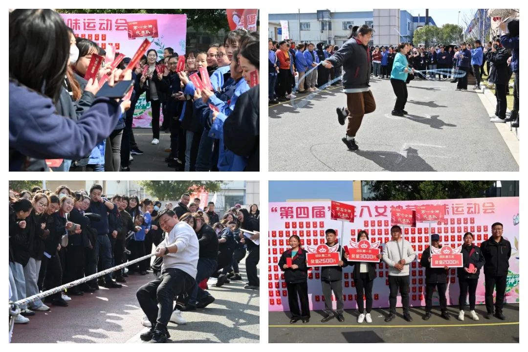 3月8日下午,双环工会在双环智慧园组织开展了第四届女子趣味运动会,向辛勤耕耘在各个工作岗位上的女员工送上节日祝福,致敬女性力量。此次趣味运动会包含抢瓶子、跳绳、踢毽子、立定跳远、颠乒乓球等5个单项以及4X100米接力赛、爱的魔力转圈圈、拔河3个团体项目。比赛现场气氛十分热烈,女员工们热情高涨,奋力争先,欢声笑语充满了园区。