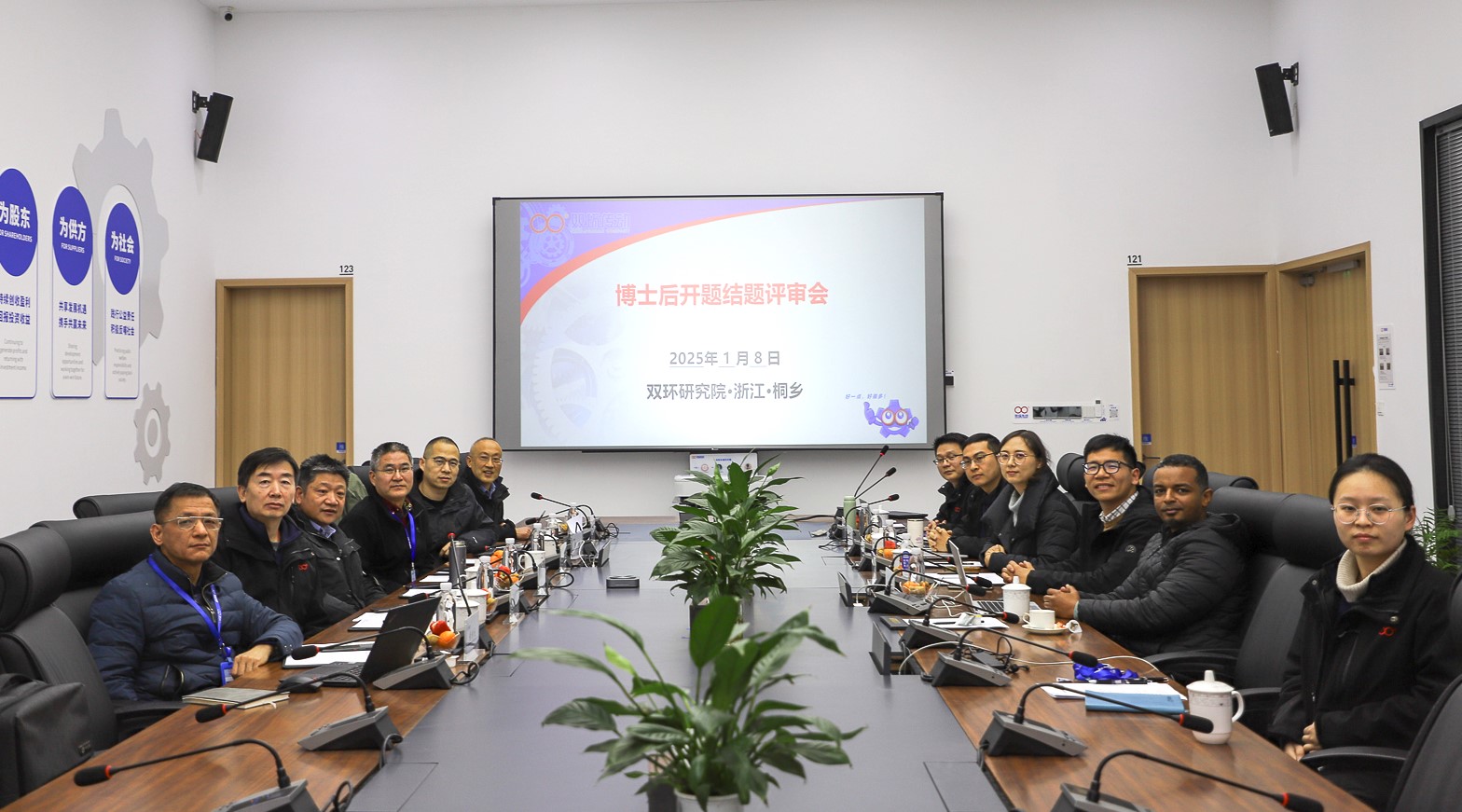1月8日下午,双环传动博士后工作站进站开题汇报及出站项目答辩会在双环研究院顺利召开。会议成立了由浙江大学陈伟球、王林翔,浙江工业大学宣琦,山东理工大学郭前建四位大学教授以及双环传动总工程师敬代云、品质总监罗建友,双环研究院副院长乔华、黄明礼,双环研究院院长助理张琦五位高级工程师组成的专家评审组。玉环市人社局人才服务中心副主任詹均皓、徐涵麒,双环传动管理总部人事行政部长陈文峰等出席会议。