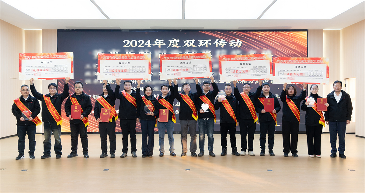 年会隆重表彰了在2024年度为双环传动发展做出突出贡献的项目团队,授予他们“董事长特别贡献奖”。该奖项由吴长鸿董事长特别设立,是对市场开发、生产经营、技术进步、管理创新四个领域非凡贡献者的最高褒奖。作为双环传动的标杆大奖,荣誉最高、奖金最大,将激励全体双环人勇往直前、奋发进取,不断超越自我,为实现自身价值、推动公司发展奋斗不已。