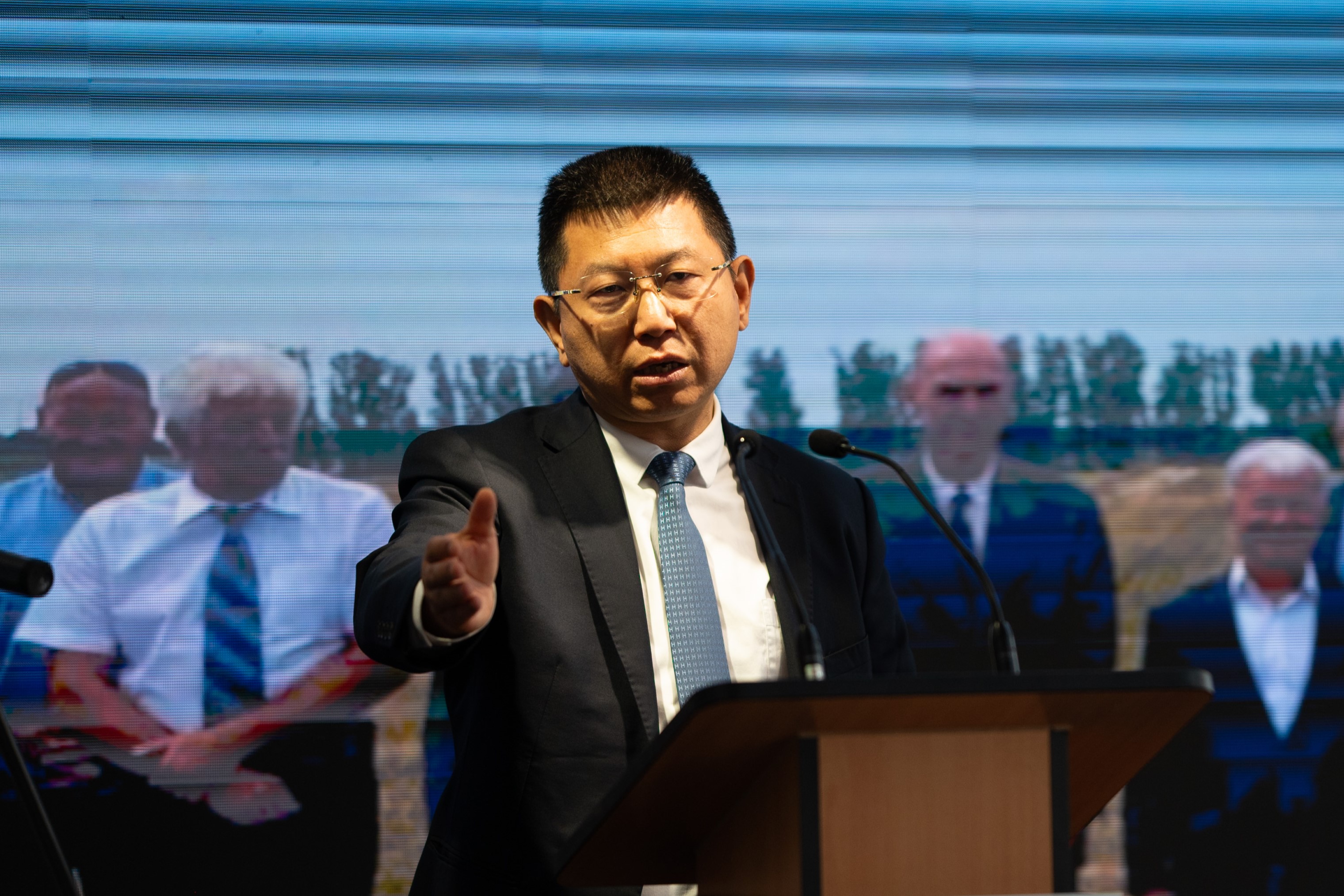 淮安区委书记颜复在致辞中,对双环传动EVORING项目取得的成果表示高度赞赏,对中匈两国企业文化团队的成功合作表示诚挚祝贺。他充分肯定了中国企业“走出去”战略的积极成效,表示双环传动这一海外战略的成功落地,不仅实现了公司的国际化发展,也为宣扬中国企业文化、推动中外文化交融做出了积极贡献。他还在现场向EVORING团队赠礼书法作品,并表示“这不仅是中国智慧的结晶,更是中匈合作的生动注脚。”