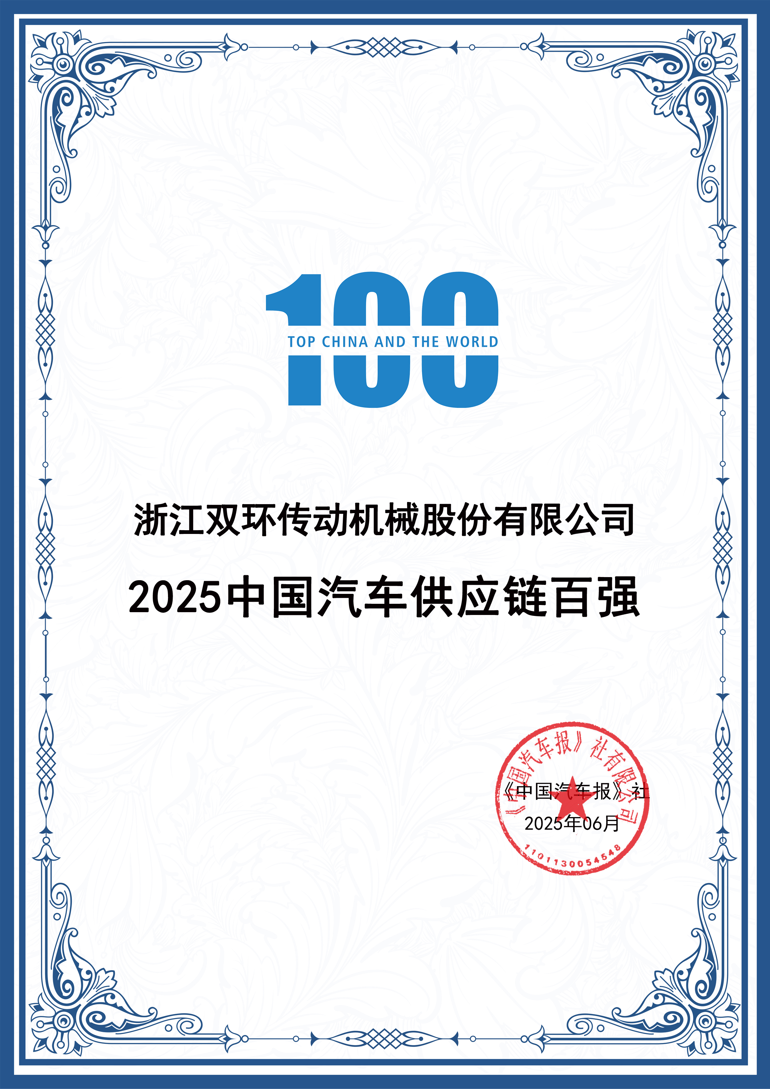 6月26日,由《中国汽车报》社有限公司(简称:《中国汽车报》社)与中国汽车工程研究院股份有限公司(简称:中国汽研)联合主办的“汽车零部件企业出海创新发展研讨会暨《2025全球汽车供应链核心企业竞争力白皮书》发布会”在苏州举行。会议揭晓了2025中国汽车供应链百强榜单,双环传动继2023年、2024年后再度荣登榜单,本次百强榜单排名第57位,同比提升6位。